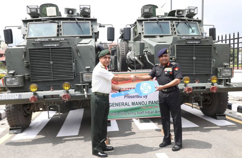काठमाडौँ, २० भदौ । प्रधानसेनापति प्रभुराम शर्माको औपचारिक निमन्त्रणामा नेपालको पाँच दिवसीय भ्रमणमा रहेका भारतीय स्थल सेनाध्यक्ष मनोज पाण्डेले नेपाली सेनालाई सहुलियतपूर्ण रुपमा चार घोडासहित रु २२ करोड ३८ लाखको सैनिक तथा मेडिकल सामग्री हस्तान्तरण गरेका छन् । विगतमा भएको नेपाल भारत द्विपक्षीय परामर्श समूहको निर्णयानुसार नेपाली सेनाको मुख्यालय जङ्गी अड्डामा आज आयोजित विशेष समारोहबीच उनले उक्त सामग्री हस्तान्तरण गरेका हुन् ।