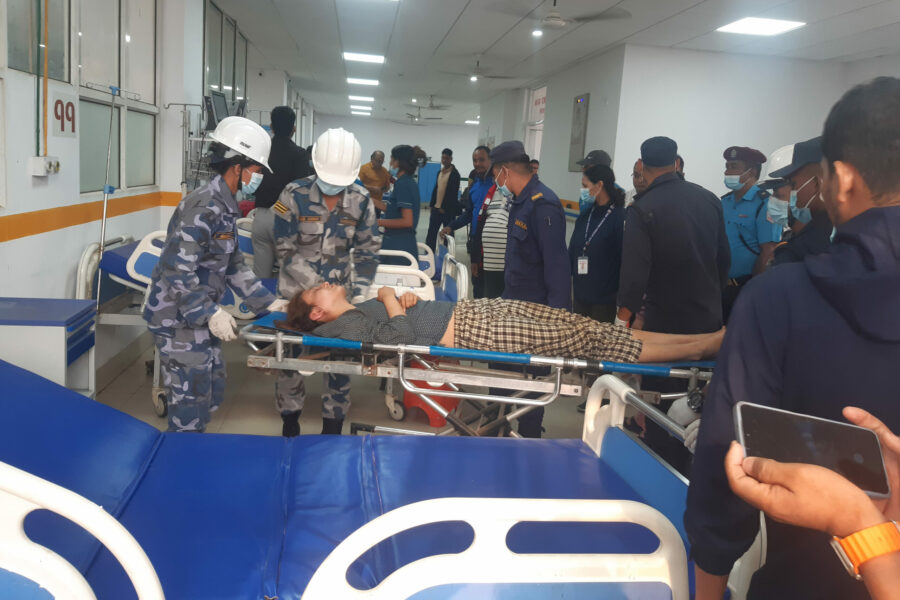 शनिबार बेलुकासम्म भूकम्प प्रभावित क्षेत्रबाट ३१ जना घाइतेलाई सेनाको हेलिकोप्टरबाट सुर्खेत र नेपालगन्ज पु¥याइएको छ । काठमाडौँ, सुर्खेत र नेपालगन्जमा स्वास्थ्यकर्मी तथा स्वास्थ्य सामग्रीसहितको टोली थप उद्धार कार्यका लागि तयारी अवस्थामा राखिएको छ ।