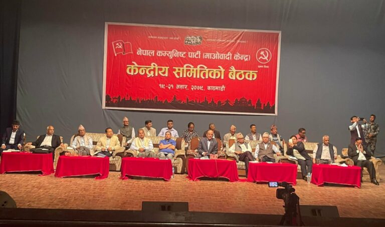 काठमाडौँ, २० असार । नेकपा माओवादी केन्द्रको केन्द्रीय समिति बैठक आज पनि बस्दैछ ।