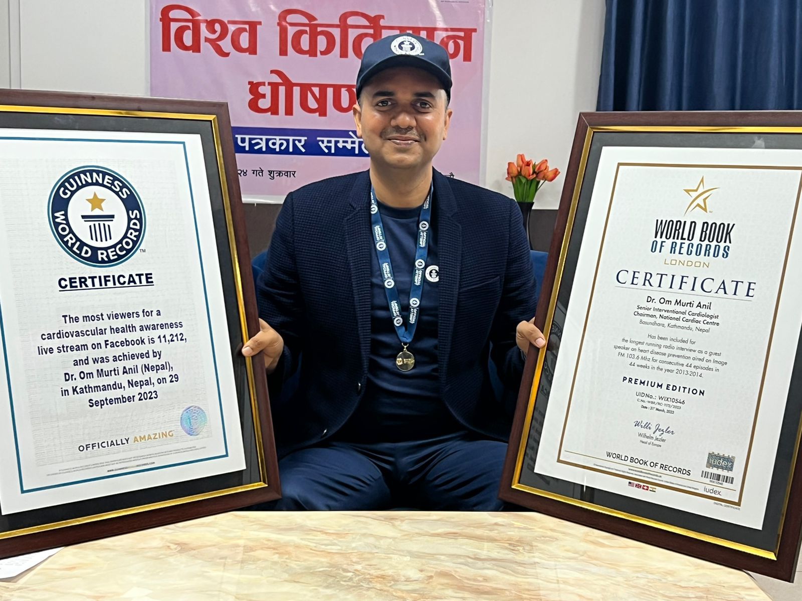 चिकित्सक एवं लेखक उनले विश्व मुटु दिवसका अवसरमा गत असोज १२ गते आफ्नो फेसबुक पेजबाट मुटुरोगको रोकथामसम्बन्धी जनचेतनामूलक प्रत्यक्ष प्रसारणबाट विश्व रेकर्ड कायम गरेका हुन् ।