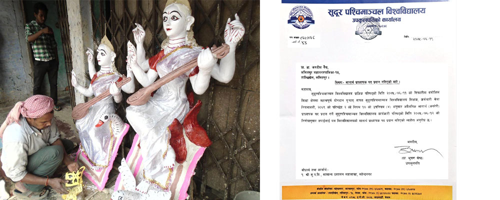 काठमाडौँ, १० माघ । प्राध्यापक पद उच्च प्राज्ञिक र अति सम्मानित हो तर नेपालका विश्वविद्यालयले त्यही पदलाई मानार्थ बनाएर सरस्वतीको मूर्तिसँग साट्ने गरेको पाइएको छ । तथाकथित ‘माननीय विशिष्ट समाजसेवी’ जगदीश वैद्यले मुलुकका विश्वविद्यालयलाई सरस्वतीको मूर्ति दिने र बदलामा मानार्थ प्राध्यापकको उपाधि लिने गरेको तथ्य सार्वजनिक भएको छ ।