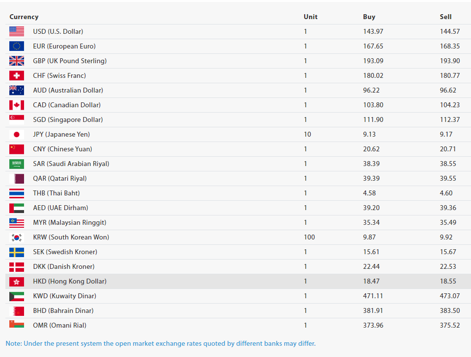 वाणिज्य बैंकले तोक्ने विनिमयदर भने फरक हुनसक्ने र अद्यावधिक विनिमयदर केन्द्रीय बैंकको वेबसाइटमा उपलब्ध छ।