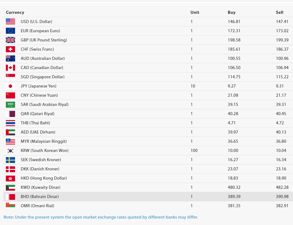वाणिज्य बैंकले तोक्ने विनिमयदर भने फरक हुनसक्ने र अद्यावधिक विनिमयदर केन्द्रीय बैंकको वेबसाइटमा उपलब्ध छ।