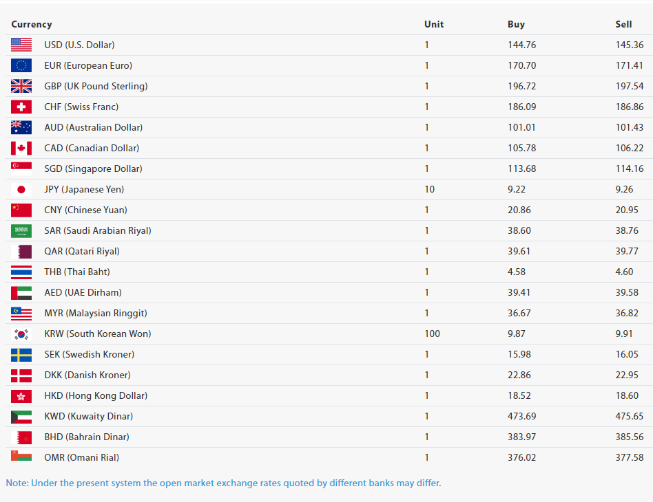 आज अमेरिकी डलर १ को खरिददर १४४ रुपैयाँ ७६ पैसा र बिक्रीदर १४५ रुपैयाँ ३६ पैसा छ।