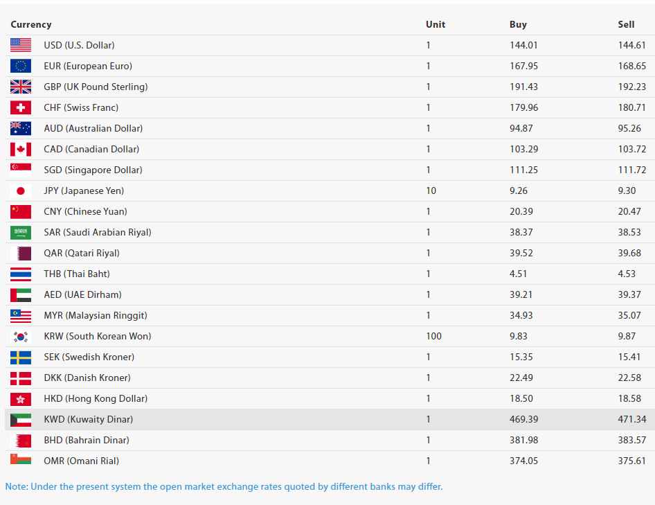 त्यसैगरि आज कुबेती दिनार १ को खरिदर ४६९ रुपैयाँ ३९ पैसा र बिक्रीदर ४७१ रुपैयाँ ३४ पैसा छ। हिजो कुबेती दिनार १ को खरिदर ४६७ रुपैयाँ ४६ पैसा र बिक्रीदर ४६९ रुपैयाँ ४१ पैसा थियो।