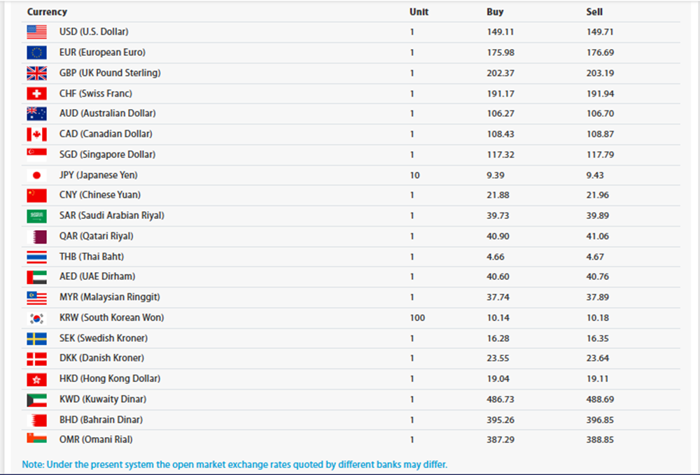 वाणिज्य बैंकले तोक्ने विनिमयदर भने फरक हुनसक्नेछ भने अद्यावधिक विनिमयदर राष्ट्र बैंकको वेबसाइटमा उपलब्ध हुनेछ।