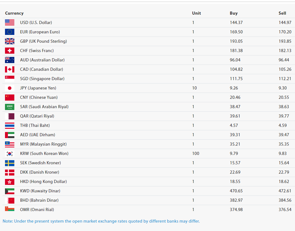आज अमेरिकी डलर १ को खरिदर १४४ रुपैयाँ ३७ पैसा र बिक्रीदर १४४ रुपैयाँ ९९ पैसा छ।