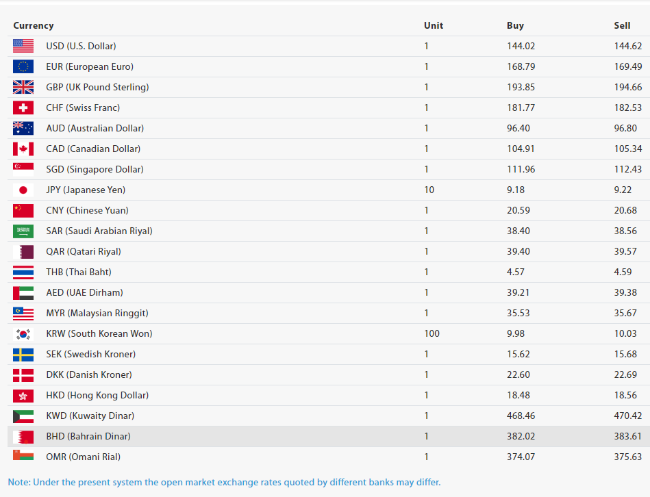 वाणिज्य बैंकले तोक्ने विनिमयदर भने फरक हुनसक्ने र अद्यावधिक विनिमयदर केन्द्रीय बैंकको वेबसाइटमा उपलब्ध छ।
