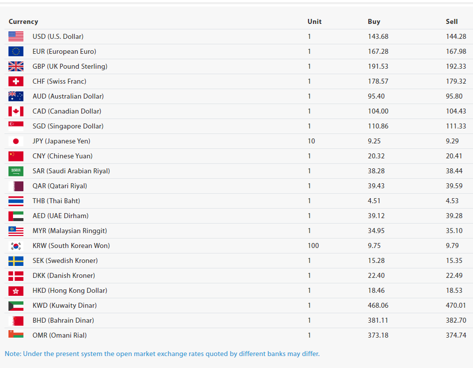 वाणिज्य बैंकले तोक्ने विनिमयदर भने फरक हुनसक्ने र अद्यावधिक विनिमयदर केन्द्रीय बैंकको वेबसाइटमा उपलब्ध छ।