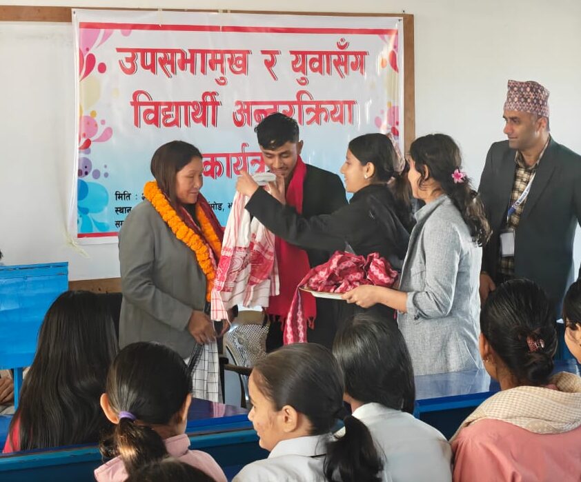 झापा, ४ पुष । बिर्तामोडस्थित महेन्द्र रत्न माध्यमिक विद्यालयमा कक्षा ११ र १२ मा अध्ययनरत विद्यार्थीहरूलाई लक्षित गर्दै नेतृत्व विकास तथा युवाको भविष्य निर्माण सम्बन्धी अन्तरक्रिया कार्यक्रम सम्पन्न भएको छ। कार्यक्रममा संघीय उपसभामुख माननीय इन्दिरा राना मगर प्रमुख अतिथिका रूपमा उपस्थित हुनुहुन्थ्यो।