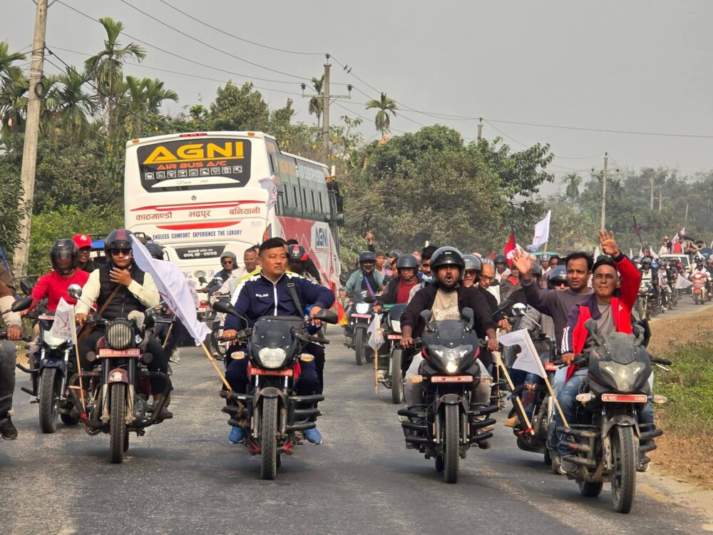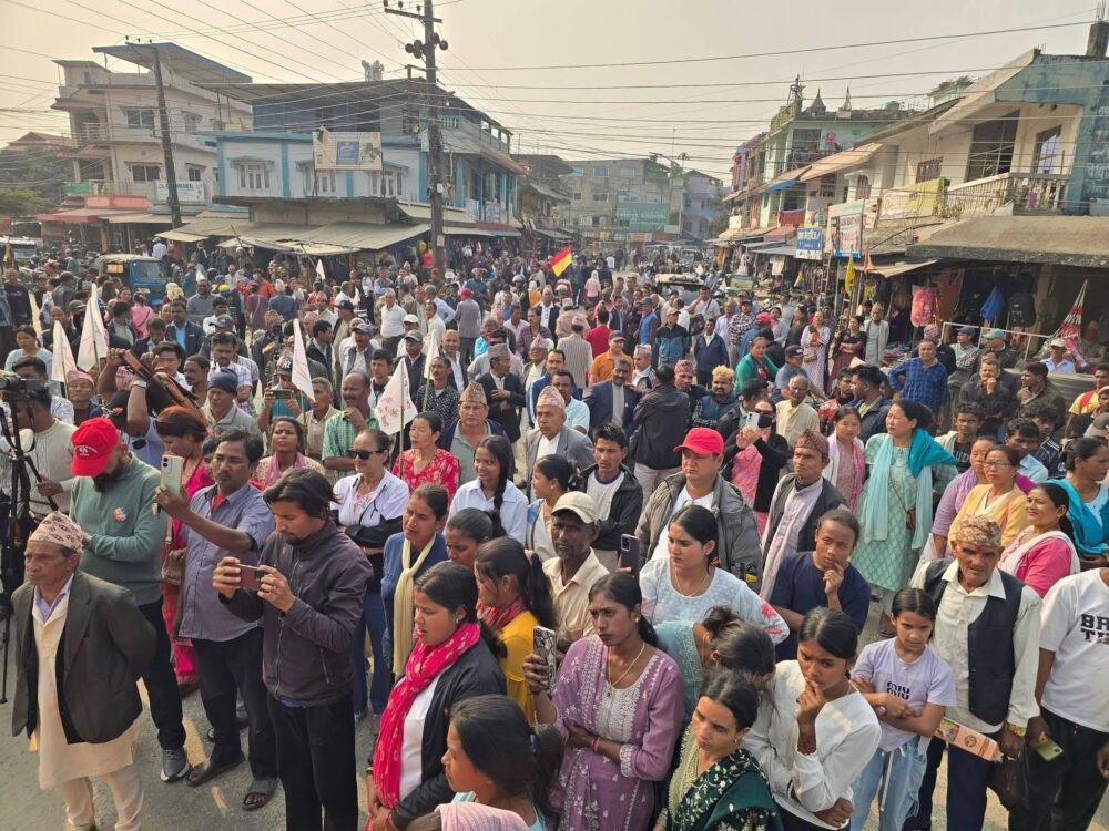 झापा, ४ फागुन । राष्ट्रिय प्रजातन्त्र पार्टीका अध्यक्ष तथा झापा क्षेत्र नम्बर ३ का उम्मेदवार राजेन्द्र लिङ्देनले झापा क्षेत्र नम्बर ३ मा आफ्नो चुनावी अभियान औपचारिक रूपमा सुरु गरेका छन्। अभियानको उद्घाटन गर्दै उनले देश नै संकटपूर्ण मोडमा पुगेको दाबी गर्दै राष्ट्र जोगाउन आफूलाई समर्थन गर्न मतदातासमक्ष अपिल गरे।
