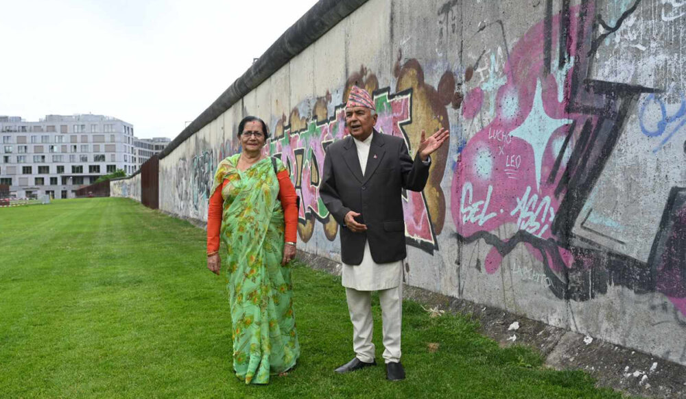 काठमाडौँ, ३ असार । मित्रराष्ट्र जर्मनीको भ्रमणमा रहनुभएका राष्ट्रपति रामचन्द्र पौडेलले आज तत्कालीन पूर्वी र पश्चिम जर्मनीबीचको भत्किएको बर्लिनको पर्खाललगायत एतिहासिक स्थलको अवलोकन गर्नुभएको छ । सो अवसरमा प्रथम महिला सविता पौडेलसहित भ्रमण दलका अन्य सदस्यहरु पनि सहभागी हुनुहुन्थ्यो ।
