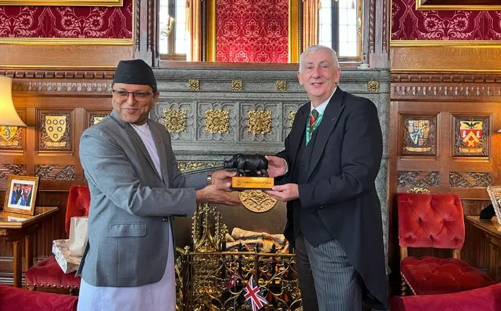 बेलायत, ९ कात्तिक । बेलायतको भ्रमणमा रहेका राष्ट्रियसभाका अध्यक्ष गणेशप्रसाद तिमिल्सिना र बेलायतको तल्लो सदन हाउस अफ कमनका सभामुख सर लिण्डसे होयलबीच भेटवार्ता भएको छ ।