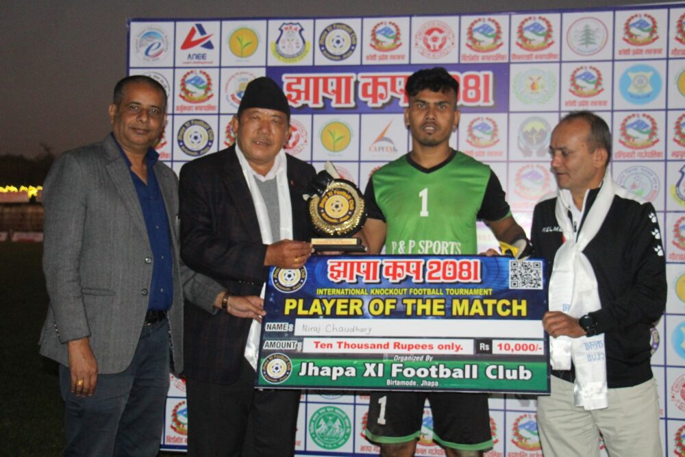 झापा, २ मंसिर । गोलरक्षक निरज चौधरी नायक बन्दा इटहरीको राष्ट्रिय जागृति क्लब झापाको बिर्तामोडमा जारी झापा कपको सेमिफाइनलमा प्रवेश गरेको छ ।