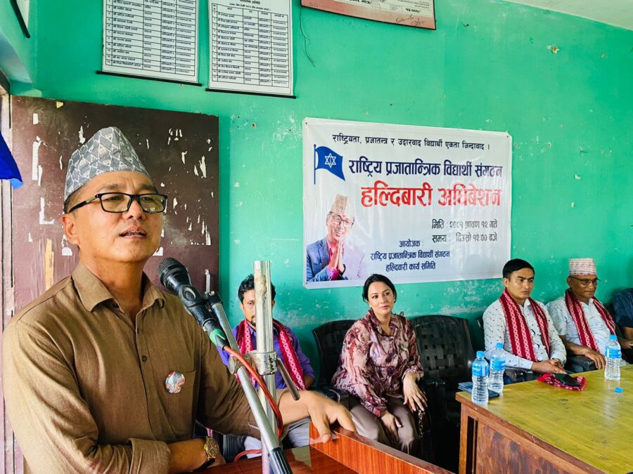 राष्ट्रिय प्रजातान्त्रिक बिध्यार्थी सङ्गठन हल्दीबारीका अध्यक्ष अनिल चौहानको अध्यक्षतामा आयोजीत कार्यक्रमा राप्रपाकी केन्द्रिय सदस्य एवं प्रशिक्षण विभाग उपप्रमुख खुश्बु ओली, राप्रपा कोशी प्रदेशका सचिव कुमार भट्टराई, राप्रपा झापाका अध्यक्ष केशव ओझा, राप्रपा हल्दीवारीका अध्यक्ष मदन मगर, राष्ट्रिय प्रजातान्त्रिक बिध्यार्थी सङ्गठन झापाका संयोजक चक्र फुयाल लगायतले शुभकामना मन्तव्य राख्नुभएको थियो ।