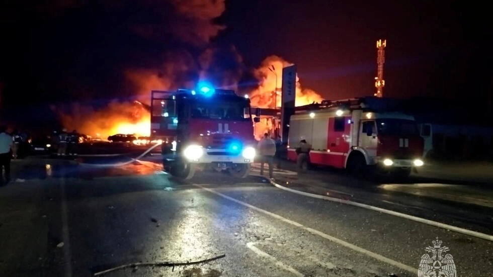 विस्फोटपछि पेट्रोल पम्पमा आगलागी भएको थियो । क्यास्पियन सागरको तटमा रहेको क्षेत्रीय राजधानी मखाच्कला सहरमा भएको विस्फोटको कारण अहिलेसम्म खुल्न सकेको छैन । सयौँको सङ्ख्यामा अग्नि नियन्त्रक परिचालन गरी आगो नियन्त्रणमा लिइएको छ ।