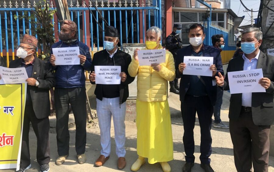 यसैगरी बिहिवारनै रुसलाई तत्काल युुद्ध अन्त्य गर्न आग्रह गर्दै पाल्पा, रुपन्देही, सङ्खुवासभा, चितवन, सुर्खेत, तेह्रथुम, नवलपुर, रसुवालगायत एक दर्जन जिल्लामा शान्ति समाजका शाखाले प्रदर्शन गरेको जनाइएको छ । शान्ति समाजले ‘युद्ध निषेध ः शान्ति विशेष’ भन्ने आह्वानसहित २७ वर्षदेखि युद्ध र आणविक अस्त्रको विरोधमा अभियान सञ्चालन गर्दै आएको छ । विगतमा रुसलाई युद्ध रोक्न आग्रहसहित काठमाडाँैस्थित रुसी राजदूतावास अगाडि पटकपटक र देशभरि एक सयभन्दा बढी प्रदर्शन गरिसकेको छ ।