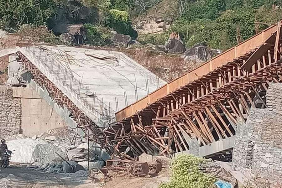 काभ्रे, १० जेठ । पाँचखाल नगरपालिका–१२ नागबेलीस्थित झिुखोलामा बन्दाबन्दैको पक्की पुल भाँचिएको छ । निर्माण व्यवसायीका लापर्बाहीका कारण बनिनसक्दै पुल भाँचिएपछि पुल भत्काएर पुनःनिर्माण गर्न स्थानीयले माग गरेका छन् ।छ वर्षअघि चन्द्रा एण्ड वसन्त एनएम जेभीले रु चार करोड ५० लाखमा करिब एक वर्षको अवधिमा निर्माण सक्ने गरी सडक डिभिजन कार्यालय भक्तपुरमार्फत ठेक्का लिई सुरु गरेको थियो । स्थानीयले पुल निर्माणमा ढिलाइ गरी अलपत्र तथा लापर्बाहीका कारण खेतमा बाढी पस्दा हजारौँ रोपनी डुबानमा परेको र क्षतिपूर्तिसमेतको माग गर्न थालेका छन् । निर्माण पक्षले बीचबाट चर्किएर भाँचिएको उक्त पुल प्लाष्टरमार्फत टाल्न खोजिएको प्रष्ट देखिन्छ ।