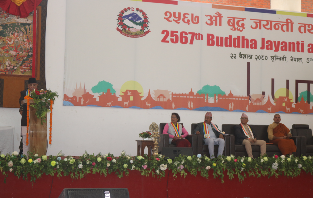 प्रधानमन्त्री प्रचण्डले २५६७औँ बुद्ध जयन्तीका अवसरमा आज बुद्ध जन्मस्थल लुम्बिनीमा आयोजित मूल समारोहलाई सम्बोधन गर्दै बुद्धसँग सम्बन्धित क्षेत्र लुम्बिनी, कपिलवस्तु, देवदह र रामग्रामका ऐतिहासिक र पुरातात्विक महत्वका सम्पदाको संरक्षण गरेर यस क्षेत्रको दिगो विकाससहित बृहत्तर लुम्बिनी क्षेत्रका रूपमा अघि बढाएको जानकारी दिए ।