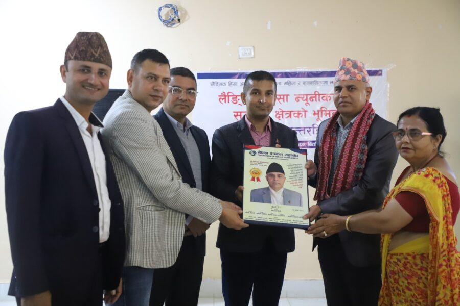 बिर्तामोड, १६ मंसीर । नेपाल पत्रकार महासंघ झापा महिला विभागको आयोजनामा शनिवार बिर्तामोडमा लैंगिक हिंसा न्यूनीकरणमा सञ्चार क्षेत्रको भूमिका विषयक अन्तरक्रिया सम्पन्न भएको छ ।