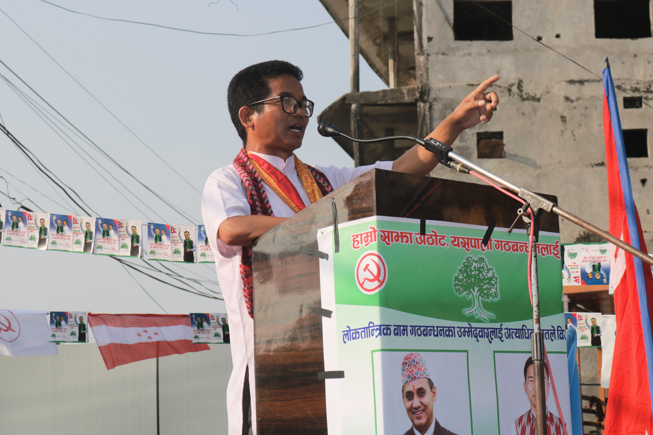 यस्तै, चारआलीमा भएको कोणसभामा संघका उम्मेद्वार शर्मासहित प्रदेश (ख) का उम्मेद्वार श्यामविर लिम्बूले सम्बोधन गरेका थिए । कार्यक्रममा प्रदेशका उम्मेद्वार लिम्बूले प्रदेश खारेज गर्ने भनेर त्यसैमा भोट माग्न आउनेहरुलाई प्रश्न गर्न आग्रह गरे । उनले राजतन्त्र बोकेर हिँड्नेलाई गणतन्त्रबादीहरुले भोटबाटै ठिक पार्नुपर्ने बताए ।