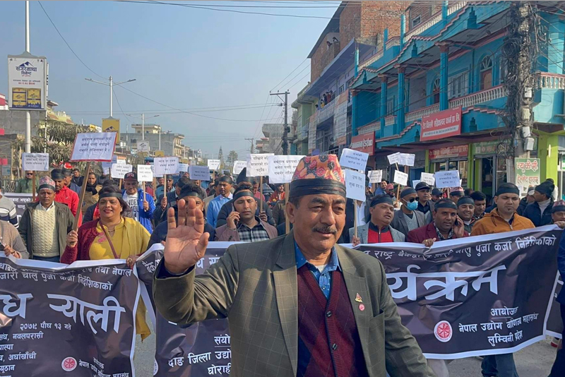 नेपाल उद्योग वाणिज्य महासंघ लुम्बिनी प्रदेशको आयोजना तथा दाङ जिल्ला उद्योग वाणिज्य संघको संयोजनमा बुधवार विरोध कार्यक्रम आयोजना गरेका हुन् ।