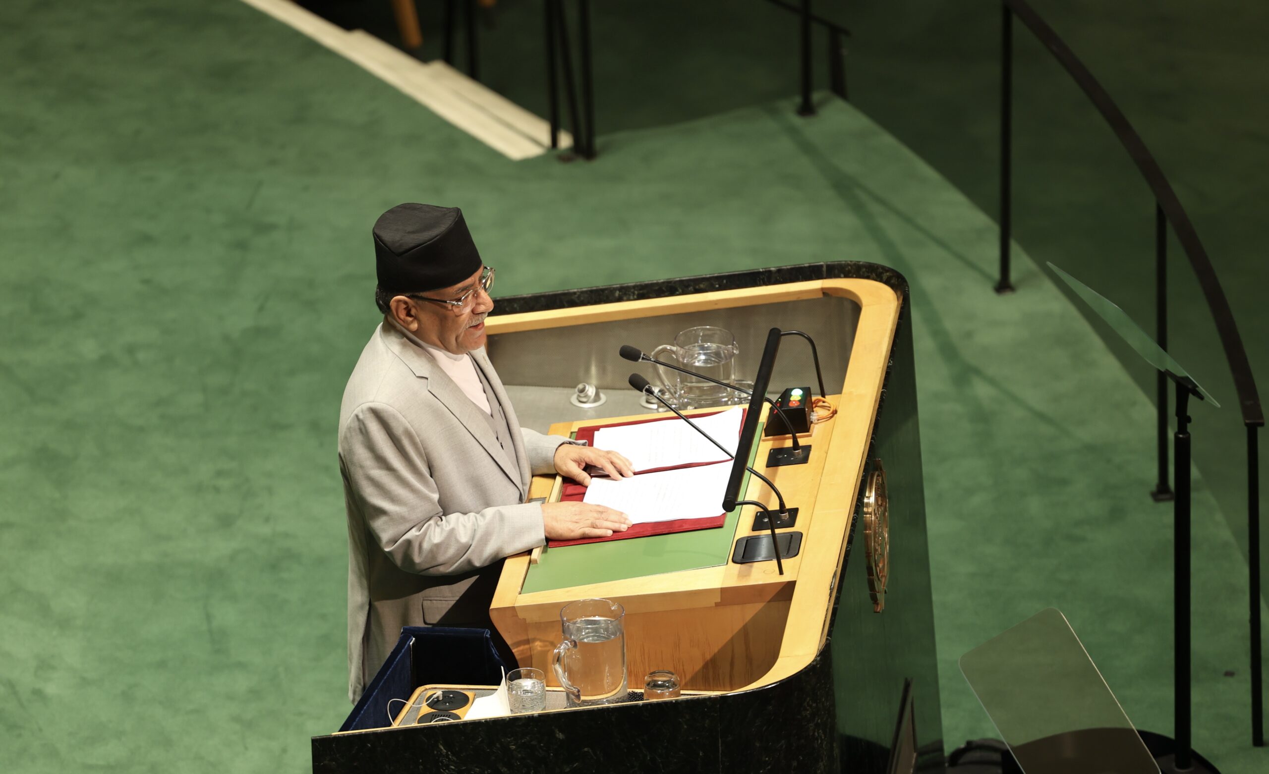 अमेरिकाको न्यूयोर्कमा जारी संयुक्त राष्ट्रसङ्घको ७८औँ महासभालाई नेपालको तर्फबाट सम्बोधन गर्दै उनले शान्ति प्रक्रियालाई तार्किक निष्कर्षमा पुर्याउन लागिपरेको विश्व समुदायलाई जानकारी गराएका हुन् ।