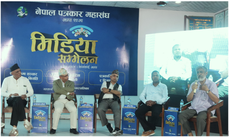 झापा, ५ जेठ । नेपाल पत्रकार महासङ्घ झापा शाखाको आयोजनामा कनकाई नगरपालिकाको सुरुङ्गामा ‘मिडिया सम्मेलन’ सुरु भएको छ । कोशी प्रदेशका आन्तरिक मामिला तथा योजनामन्त्री राम रानाले सम्मेलनको उद्घाटन गर्नुभयो ।