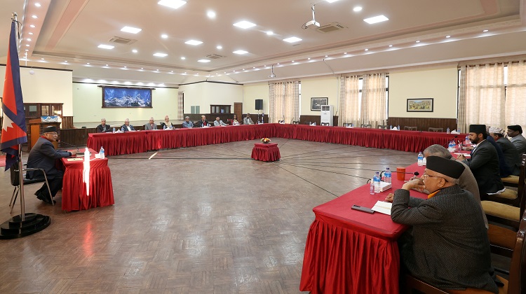 नवनियुक्त उपप्रधानमन्त्री, मन्त्री र राज्यमन्त्रीको शपथ ग्रहणलगत्तै बैठक सुरु भएको हो । बैठकमा प्रधानमन्त्री प्रचण्डलाई विश्वासको मत दिएका दलहरूको सहभागिता छ ।