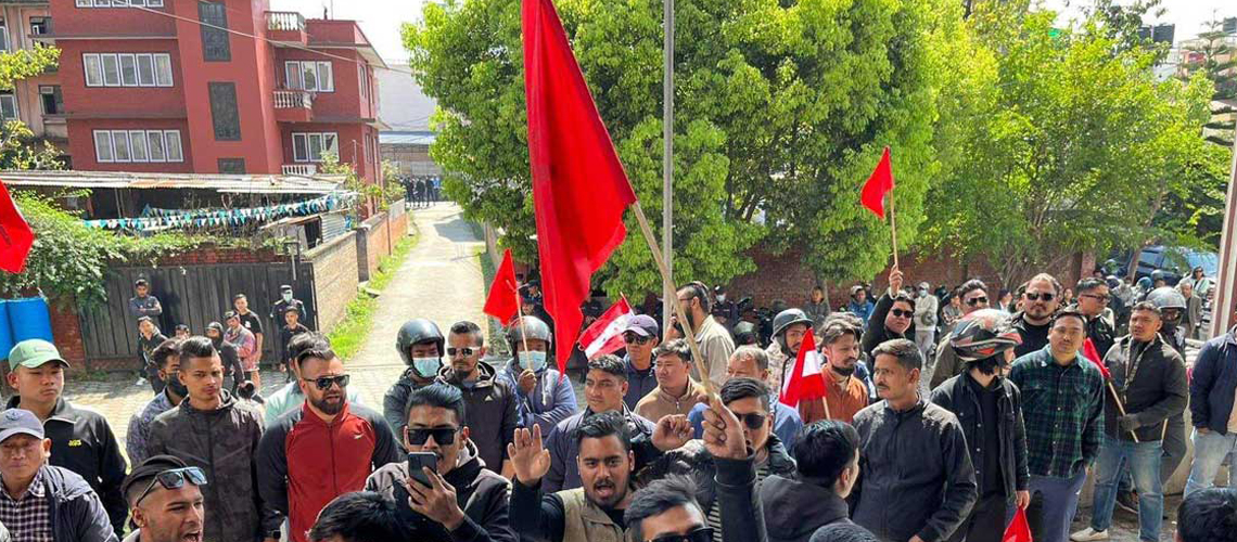 काठमाडौँ, १९ चैत । नेपाली कांग्रेस निकट नेपाल विद्यार्थी संघका कार्यकर्ताहरूले पार्टी कार्यालयमा नाराबाजी गरेका छन् ।