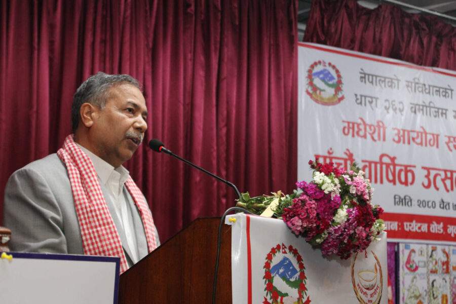 मधेशी आयोगको पाँचौं वार्षिकोत्सवका अवसरमा बुधबार आयोगले काठमाडौंमा आयोजना गरेको कार्यक्रमलाई संवोधनका क्रममा उनले उक्त धारणा राखेका हुन् । ‘नेपालमा उल्लेख्य जनसंख्या रहेको मधेशी समुदायको इतिहास र पहिचान, हकहितको संरक्षण र सम्वर्धन तथा सशक्तीकरण गर्ने उद्देश्यले स्थापना गरिएको मधेशी आयोगले बिना विषयान्तरको आफ्नो कार्यादेश र संवैधानिक व्यवस्था अनुसार मधेशी जनअपेक्षा अनुरुप सक्रियता बढाउन जरुरी छ ’ उनले भने, ‘ आयोगले यो वार्षिकोत्सवलाई विगतमा गरेका काम र गतिविधिहरुको समिक्षा गर्ने अवसरको रुपमा लिँदै आफूलाई परिस्कृत र परिमार्जित गर्न आवश्यक छ । ’