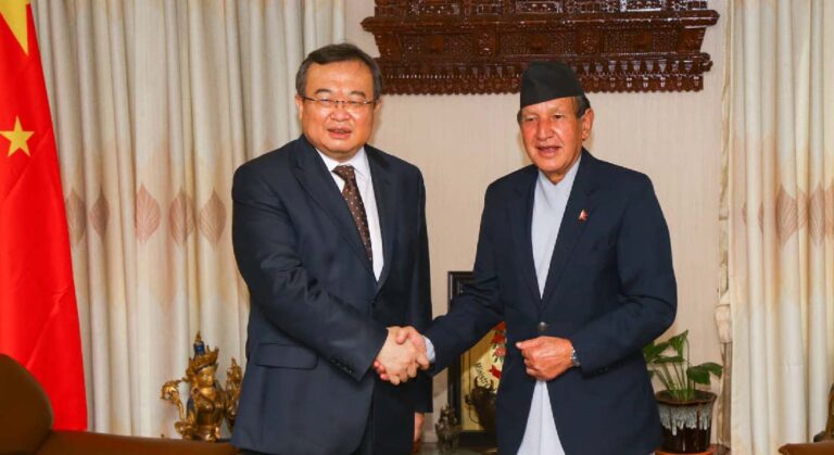 काठमाडौँ, २६ असार । चिनियाँ कम्युनिस्ट पार्टी (सीपीसी)का विदेश विभाग प्रमुख लिउ जियन्चाओले परराष्ट्रमन्त्री नारायण खड्कासँग भेटवार्ता गरेका छन् ।