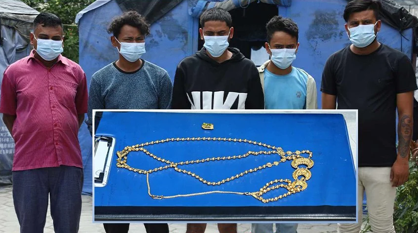 काठमाडौँ, २४ असार । काठमाडौँका विभिन्न स्थानमा महिलाको घाँटीमा लगाइएको सुनका सिक्री लुटपाट गर्ने कार्यमा संलग्न गिरोहका पाँच जनालाई काठमाडौँ उपत्यका अपराध अनुसन्धान कार्यालयको प्रहरी टोलीले पक्राउ गरेको छ ।