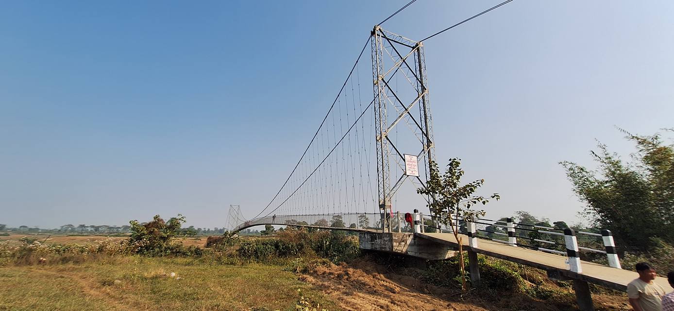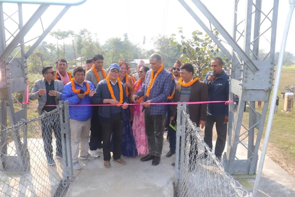 झापा, १८ पुष । झापा जिल्लाको हल्दीबारी गाउँपालिका–३ र भद्रपुर नगरपालिका–७ लाई जोड्ने झोलुङ्गे पुल आज औपचारिक रूपमा उद्घाटन गरिएको छ।