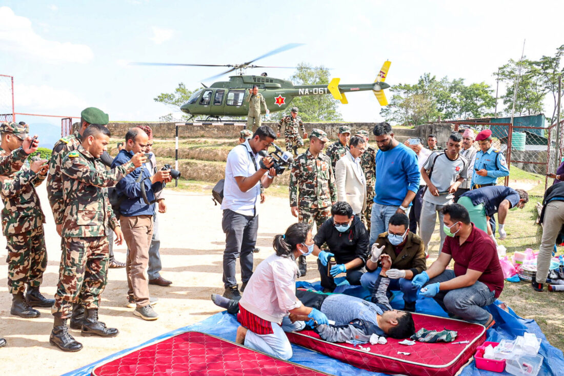 घाइतेहरुलाई नेपाली सेनाको हेलिकोप्टरबाट उद्धार गरिएको हो । नेपाली सेनाले हेलिकोप्टरसहित ११ जना जनशक्ति उद्धारका लागि घटनास्थलमा खटाइएको नेपाली सेनाका प्रवक्ता सहायक रथी कृष्णप्रसाद भण्डारीले जानकारी दिए । हेलिकोप्टरमा सवार पाँच जनामध्ये तीन जना गम्भीर घाइते र बाँकी दुई जना सामान्य घाइते भएको उनको भनाइ छ ।