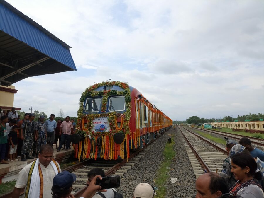 महोत्तरी, १ साउन । महोत्तरीको भङ्गाहा–४ पलारकी सियानकीदेवी बाँतरको रेल चढ्ने रहर पूरा भएको छ । सोमबार बिहानै भङ्गाहा–५ स्थित रेलस्टेसनबाट उनी रेल चढे । “हमरा सैद्खन रेल चलके इञ्तिजार छल, आव पूरा भेल (मलाई सँधै रेल कहिले चल्ला भन्ने पखाई थियो, अब पूरा भयो)”, भङ्गाहा स्टेसनबाट रेल जनकपुरतर्फ गुडेपछि खुसी साँट्दै बाँतरले भने, “आब चल्ली जनकपुर १ घुइमफिरक सझुका रेलस घर चैल आयब (अब हिँडे जनकपुर १ घुमफिर गरेर साँझ रेल चढेरै घर फर्कौँला )।”