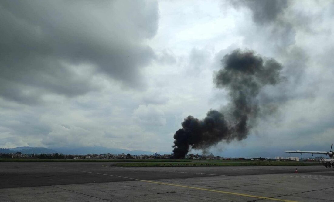 काठमाडौं,९ साउन । त्रिभुवन अन्तर्राष्ट्रिय विमानस्थल काठमाडौंमा सौर्य एयरलाइन्सको जहाज दुर्घटना भएको छ । दुर्घटनाका कारण विमानमा आगो लागेको छ । अग्नि नियन्त्रक र सुरक्षाकर्मीहरुको टोली नियन्त्रणको प्रयासमा छन् ।