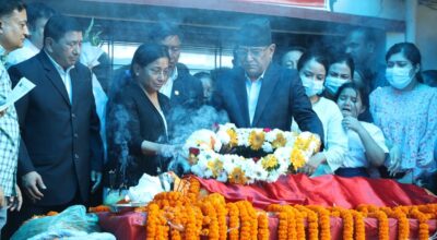 Kathmandu, 12 July : Leaders and cadres of the CPN (Maoist Centre) who reached and offered their tributes to Sita Dahal, the Maoist Centre leader and spouse of Prime Minister