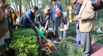 Kathmandu, 22 Mar : President Ramchandra Paudel has planted saplings at Bankali in Pashupati area. President Paudel planted saplings of Nagchampa flower in Bankali area today. According to the host