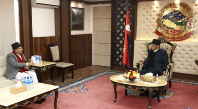 Kathmandu, 26 Jan : Prime Minister Pushpa Kamal Dahal ‘Prachanda’ and CPN (UML) Chair KP Sharma Oli held discussion on contemporary political issues. During the meeting held at the official