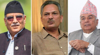 Kathmandu, 9 Dec : CPN (Maoist Centre) Chair Pushpa Kamal Dahal ‘Prachanda’, Nepal Samajbadi Party Chair Dr Baburam Bhattarai and Nepali Congress senior leader Ram Chandra Poudel held a meeting