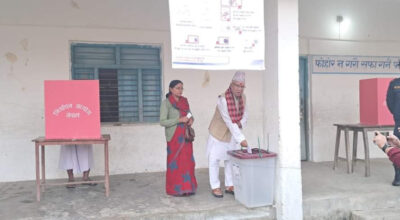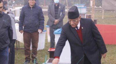 Kathmandu, Nov 20 : Chairperson of CPN (Unified Socialist) and former Prime Minister Madhav Kumar Nepal has voted from Ramjanaki Kanya Basic School polling station in Rautahat. Nepal is a