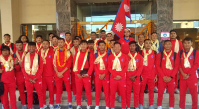 काठमाडौँ, २६ कात्तिक । फिफा विश्वकप २०२६ दोस्रो चरण र एएफसी एसिया कप २०२७ को संयुक्त छनोटअन्तर्गत संयुक्त अरब इमिरेट्स (यूएई) विरुद्ध खेल्न नेपाली राष्ट्रिय पुरुष फुटबल आज युएई प्रस्थान