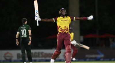 काठमाडौँ, १८ साउन । पाकिस्तानसँगको दोस्रो टी–२० खेलमा वेस्ट इन्डिज दुई विकेटले विजयी भएको छ । यो जीतसँगै तीन खेलको टी–२० शृङ्खला १–१ को बराबरी भएको छ । पाकिस्तनले दिएको