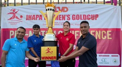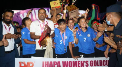 झापा, २४ कात्तिक । झापाको शिवसताक्षीस्थित दुधे रंगशालामा सम्पन्न एलभिडी झापा महिला गोल्डकपको उपाधि नेपाल पुलिस क्लबले जितेको छ । सोमबार भएको फाइनलमा पुलिसले विभागीय प्रतिद्वन्द्वी एपिएफ फुटबल क्लबलाई १–०