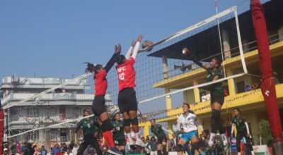 झापा, २० मंसिर । झापाको अर्जुनधारामा जारी अर्जुनधारा खुला महिला भलिबल प्रतियोगितामा नेपाल पुलिस क्लब फाइनलमा प्रवेश गरेको छ । आज भएको पहिलो सेमिफाइनल खेलमा अर्को विभागीय टोली त्रिभुवन आर्मी