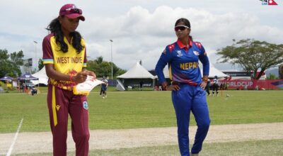 काठमाण्डाै, २९ पुस । आईसीसी १९ वर्षमुनिको महिला टी–२० विश्वकप क्रिकेटअघिको अभ्यास खेलमा नेपाल वेस्ट इन्डिजसँग ९ रनले पराजित भएको छ । वेस्ट इन्डिजले दिएको १ सय १० रनको लक्ष्य