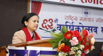 काठमाडौँ, ७ फागुन । सञ्चार तथा सूचना प्रविधिमन्त्री रेखा शर्माले पूर्ण प्रेस स्वतन्त्रताको संरक्षण गर्दै पत्रकारिता क्षेत्रलाई विकसित र व्यवसायिक बनाउन सरकार प्रतिवद्ध रहेको बताएकी छन् । सोमबार राष्ट्रिय समाचार
