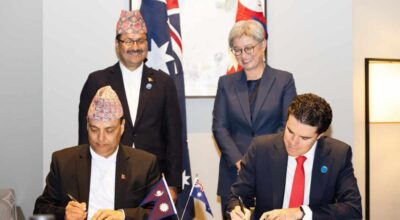 काठमाडौँ, २६ माघ । नेपाल र अष्ट्रेलियाबीच व्यापार तथा लगानीसम्बन्धी सम्झौता भएको छ । परराष्ट्रमन्त्री एनपी साउदको अष्ट्रेलिया भ्रमणका क्रममा उक्त सम्झौता भएको उनको सचिवालयले जनाएको छ । अष्ट्रेलियाका लागि