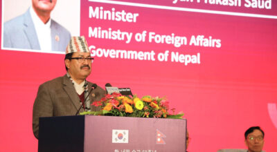 काठमाडौँ, १६ माघ । परराष्ट्रमन्त्री नारायणप्रकाश साउदले नेपालमा आगामी वैशाखमा हुने लगानी शिखर सम्मेलनमा कोरियाली लगानीकर्ता र उद्यमीहरूको ठूलो सङ्ख्यालाई स्वागत गर्न आफूहरु तत्पर रहेको बताएका छन् । नेपाल र